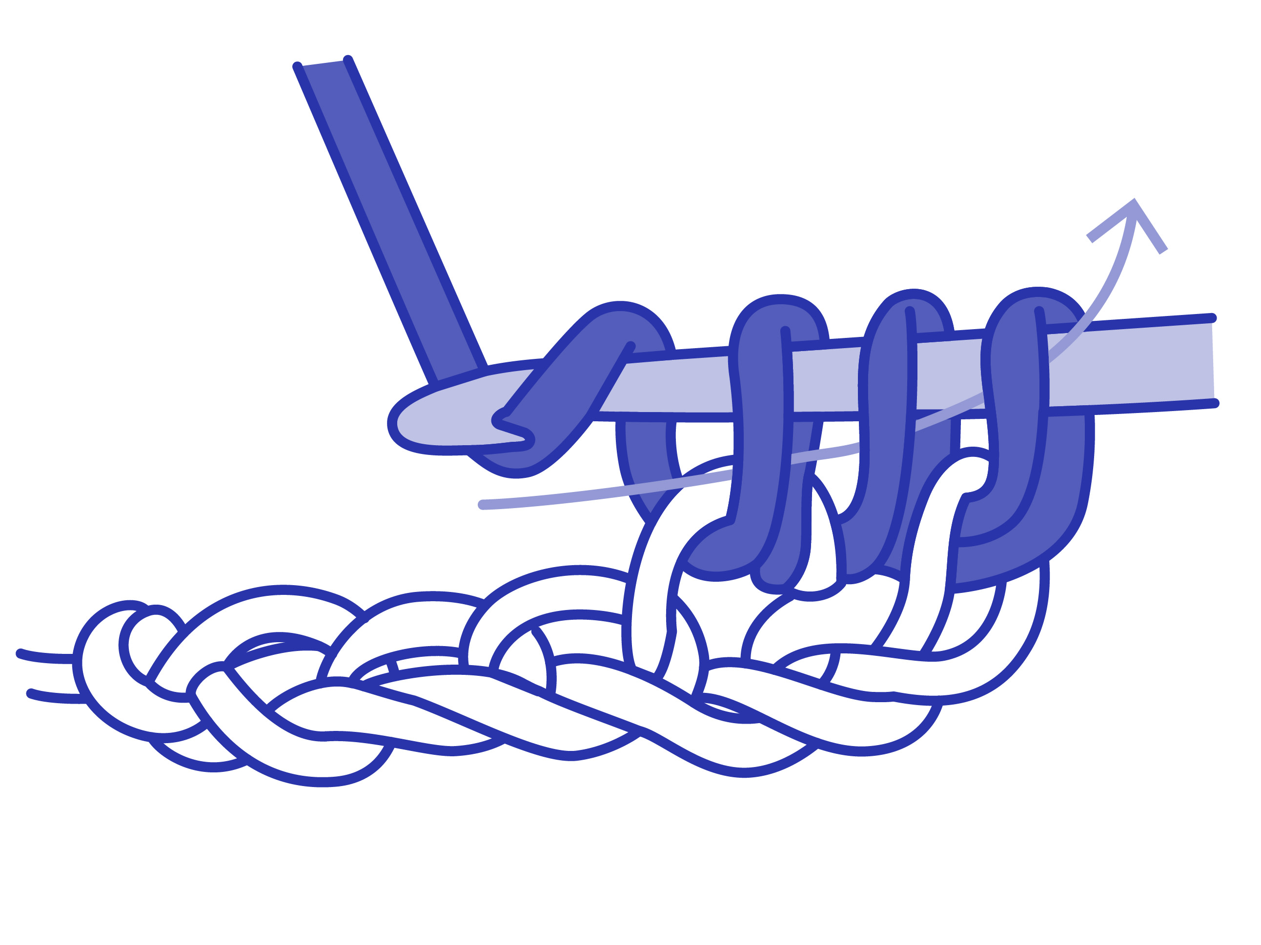 Repeat step 1 twice (or the number specified in the pattern). There are now 7 loops on the hook.