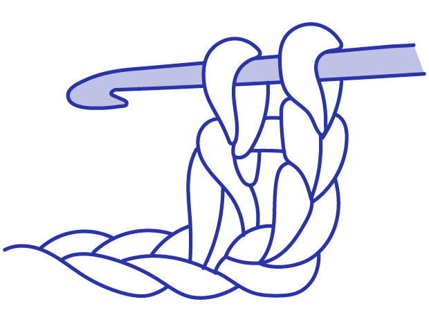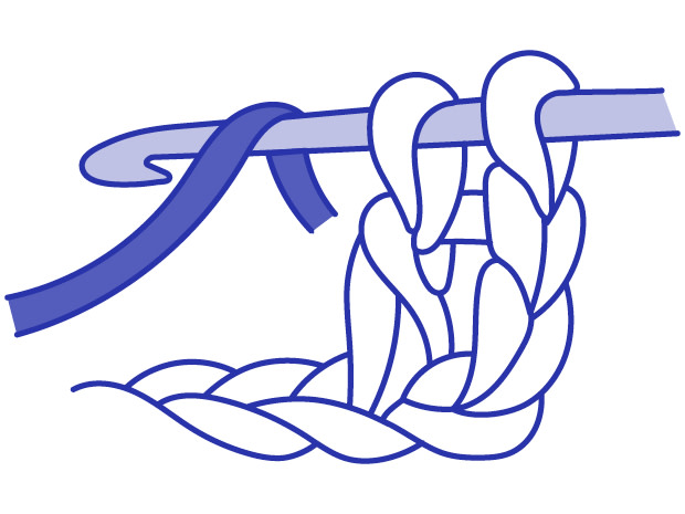 Wrap the yarn around the hook and pull it through the stitch or space. There are now three loops on the hook.