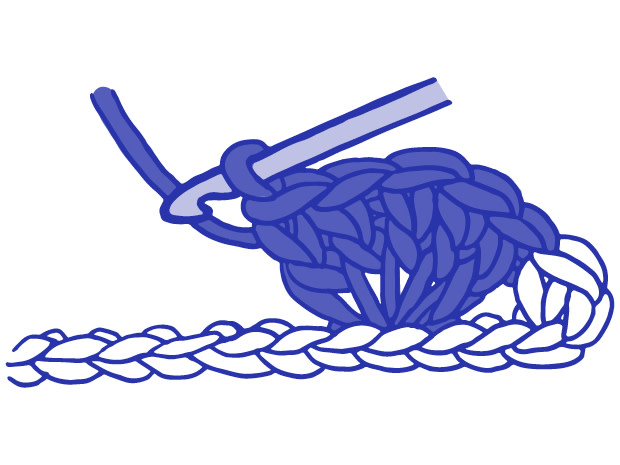 Yarn over hook three times, then insert the hook into next stitch. Yarn over hook and draw yarn through the stitch - you have five loops on the hook.