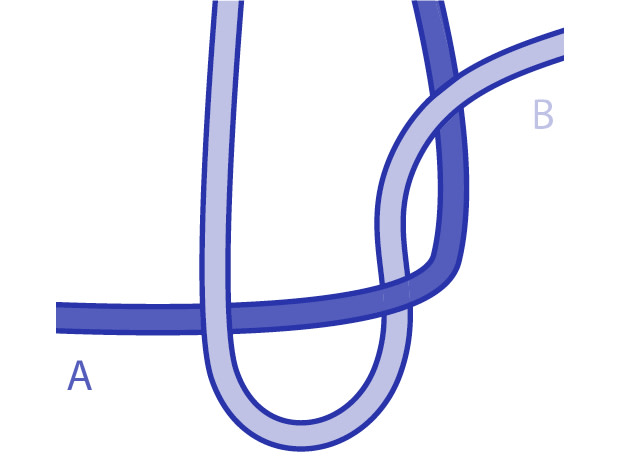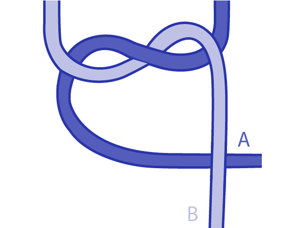 Passez B par-dessus A puis sous A par la gauche à l’endroit où les cordes se croisent.