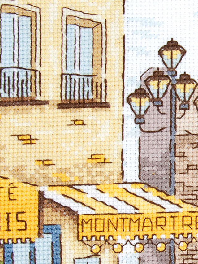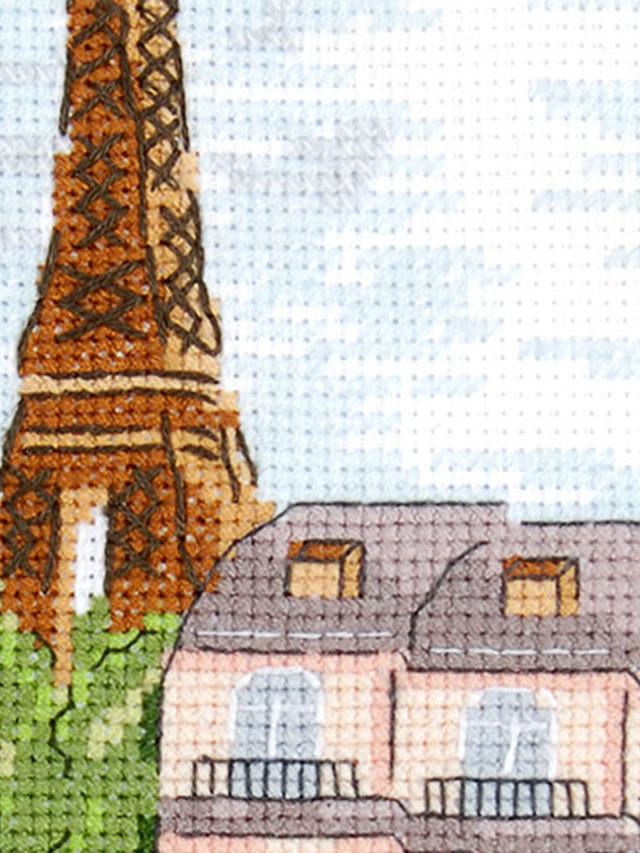Dans le motif de la Tour Eiffel, qu'Anna a récemment créé pour la Collection Créateurs, elle a utilisé le point arrière pour ajouter la texture à la tour elle-même afin de représenter sa structure et d'en faire le point central de sa charmante composition. Elle a également utilisé le point arrière pour séparer et définir le contour des toits. Dans le lierre à gauche du motif, la couleur chevauche les points arrière, ce qui lui confère l'esthétique unique des aquarelles.